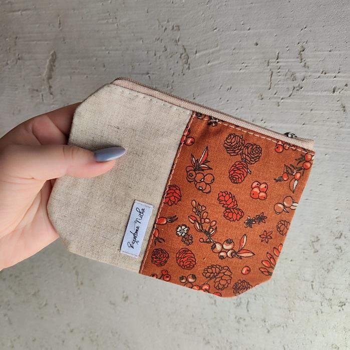 Kosmetyczka/organizer uszyta ze skrawków tkanin, żeby nie marnować. Kosmetyczka z drugiej strony ma inny kawałek tkaniny oczywiście dobrany pod kolor całości (niespodzianka). Wymiary kosmetyczki: 16 cm x 12 cm.