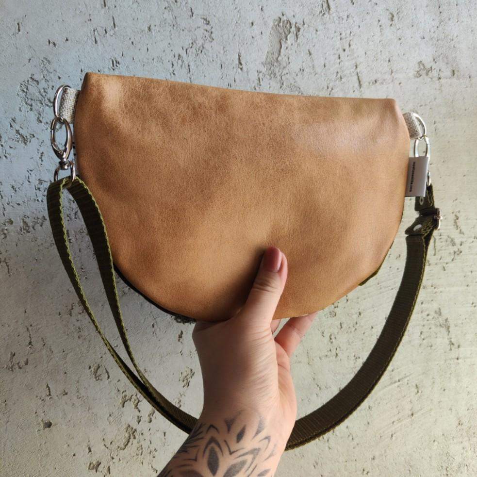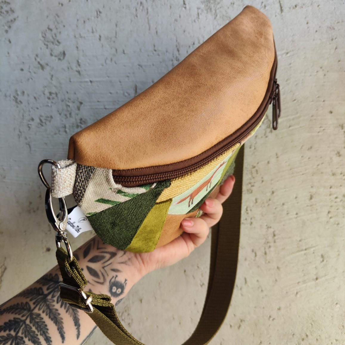 Nerka o fasonie półksiężyc, większa od nereczki półksiężyc. Uszyta z końcówek/resztek tkanin, żeby nie marnować przez co jest unikatowa bo tylko 1 sztuka. Wewnątrz nerki wszyta kieszonka przegródka na tylnej części. W komplecie do nerki regulowany pasek z minimalnym obwodem 88 cm. Jeżeli potrzebujesz innego minimalnego obwodu wystarczy, że dodasz taką informację w komentarzu do zamówienia. Wymiary nerki: 25 cm x 18 cm x 8 cm.
